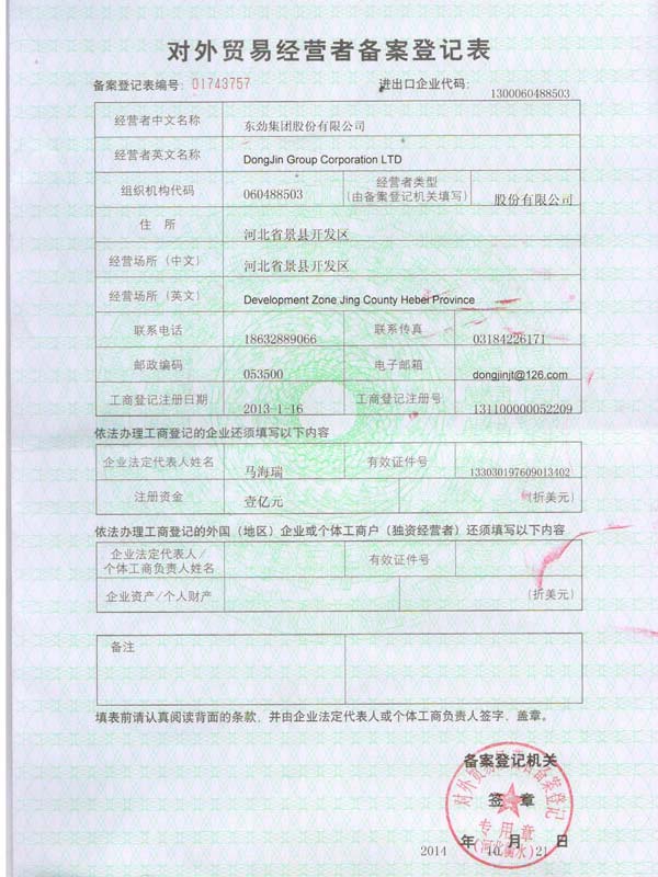 • 對(duì)外貿(mào)易備案證