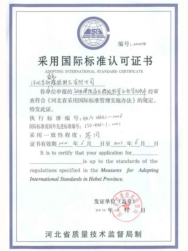 • 鋼編管國(guó)際標(biāo)準(zhǔn)產(chǎn)品標(biāo)志證書